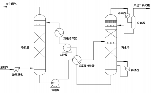 图 2.1 胺吸收法 CO2捕集工艺流程简化图